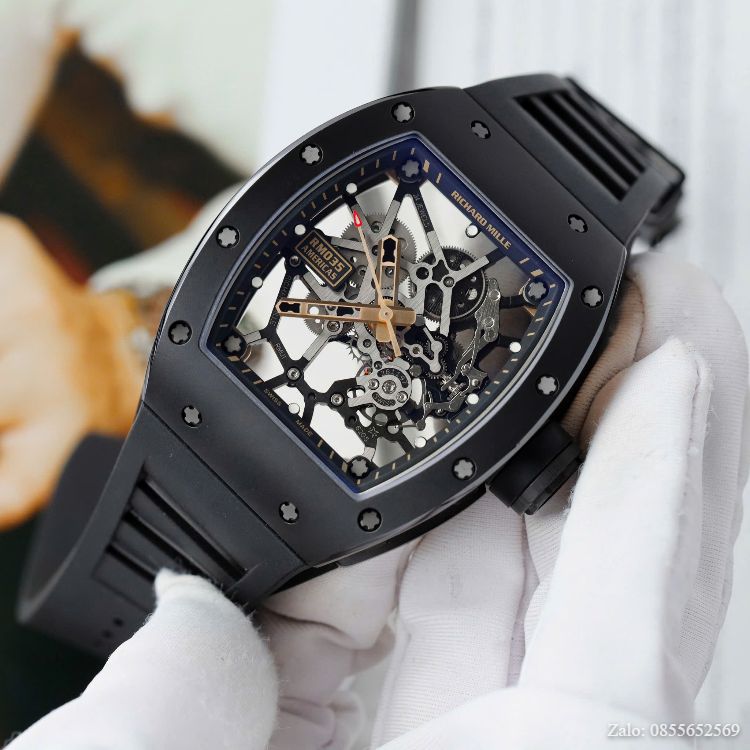 Đồng hồ Richard Mille Like Auth là phiên bản chế tác theo tỉ lệ 1:1 so với bản gốc. Từng chi tiết như vỏ tonneau (hình dáng đặc trưng của Richard Mille), mặt skeleton lộ máy, ốc vít đặc trưng, dây cao su cao cấp… đều được hoàn thiện tinh xảo.
