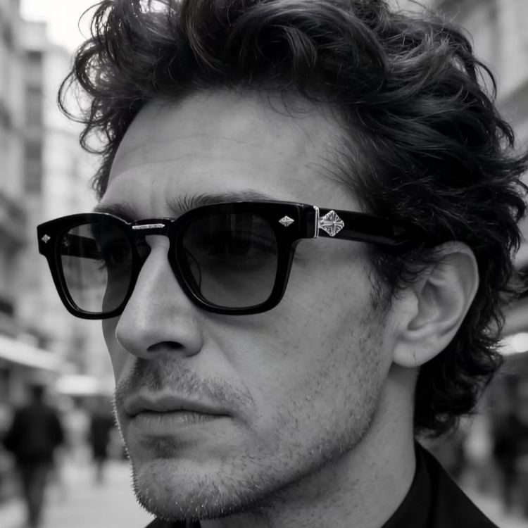 Mắt Kính Cận Nam Mắt Vuông Chrome Hearts dành cho gương mặt to. Chất liệu nhựa actate lõi thép khảm họa tiết giothic. Thích hợp thay tròng cận, viễn thị.